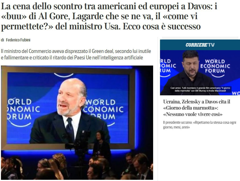 According to Corriere della Sera, the incident occurred during a dinner in Davos hosted by the interim co-chair of the forum, Larry Fink, CEO of the American company BlackRock.