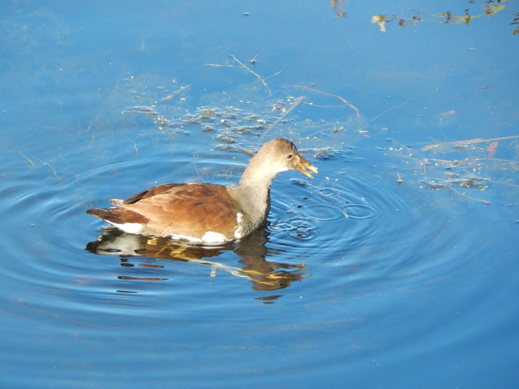 Look at those feet! These big feet enable the common Mud Hen to walk over floating marsh plants and prevent them from sinking into the mud. They are a noisy little bird and commonly found in waterways in Florida.