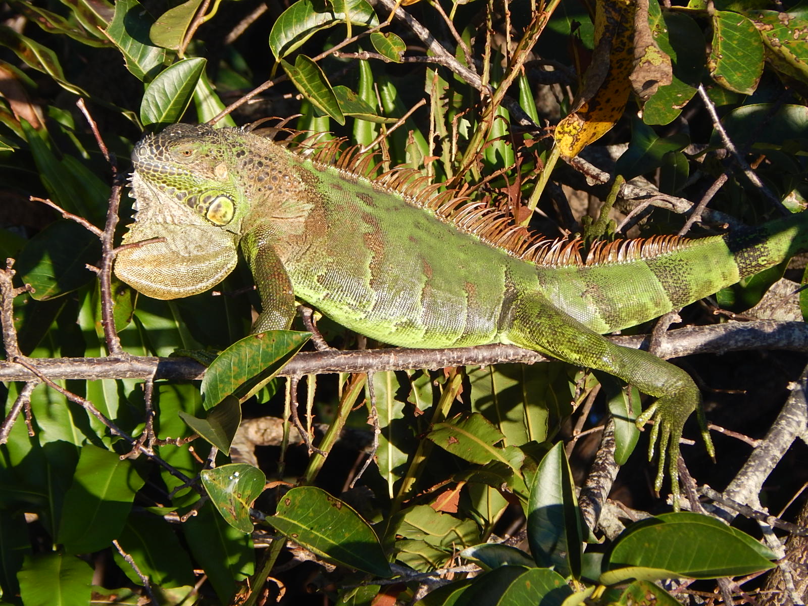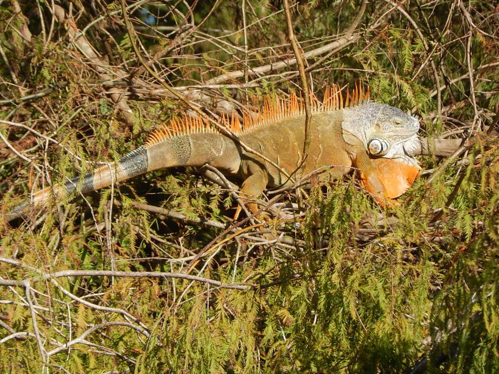 There were several large green iguanas perched on trees attempting to keep warm. Although the sun was brilliant, there was a sharp cool breeze during the early part of my walk. I also noted a handsome Night Heron perched in a nearby Cypress tree but could not get a good photo of him. They are a very distinctive-looking bird and fairly rare, although I have occasionally seen one at our local pond.