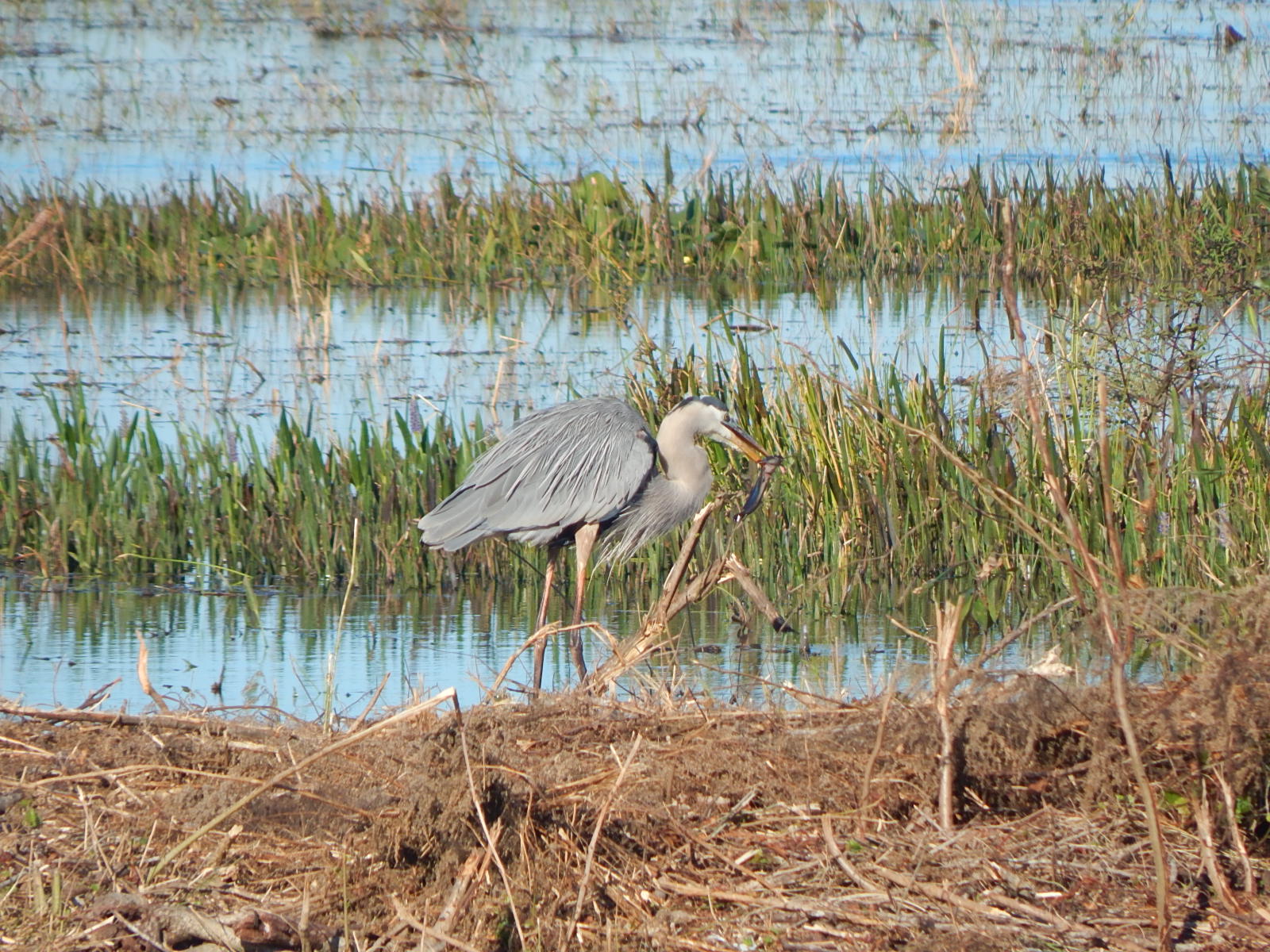 On this particular day, I probably walked over three miles, all of it on the roads that follow the dikes and canals. There were plenty of birds present, just not a huge variety… at least what I could spot in my spontaneous bird-watching. I did see several herons and Great White Egrets busy among the reeds hunting for a meal. One of the Great Blue Herons caught a fish while I was on the scene. Then, there were the Common Mud Hens, some Tri-colored herons, some Limpkins, a woodpecker, and some smaller unidentifiable birds in flight. I also noticed several small flocks of bright green parakeets, an alien species who have made a home in SE Florida much like other sub-tropics like the python. Florida’s subtropic climate makes it appealing for many species which really don’t belong…