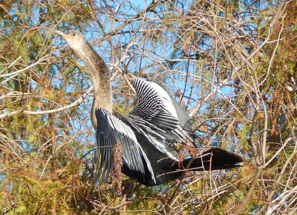 For those of my readers who may be tired of watching disclosure and related videos… I took a photo stroll through Green Cay Wetlands this morning. It was a slightly nippy morning for SE Florida… temperature range in low 50’s (about 12.7 C), cool enough to put on a light sweatshirt. Oddly enough though, there were quite a few birds to be seen. Flocks of Glossy and White Ibis were flying around and landing. Cormorants were busy building nests high up in the swamp cypress trees. Anhingas and Grackles were feeling the urge to show off and attract mates. Hawks were hanging out, lurking in the shadows, observing the activity and making other birds nervous. It was quite entertaining to listen to a Green Heron ‘talk’. I saw a rare treat, a Night Heron hunched on a branch basking in the sunlight. All and all, a busy fruitful morning for photos.