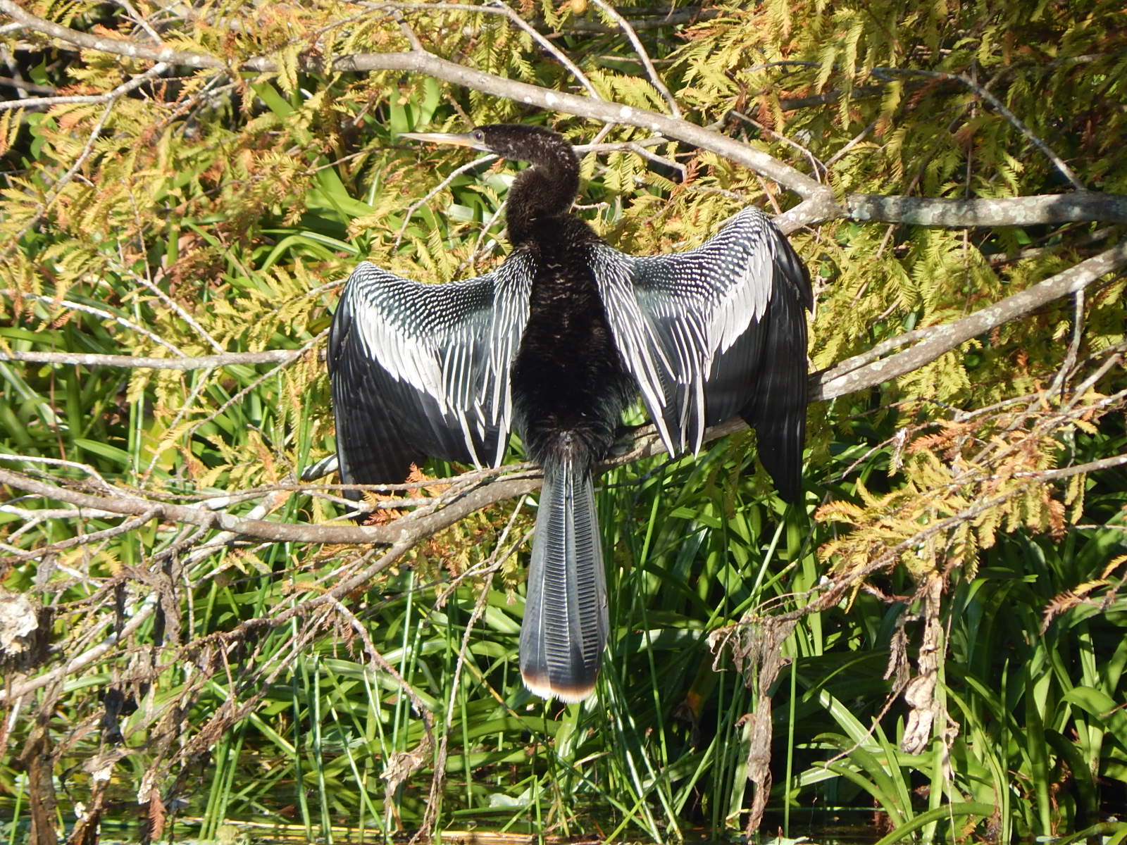 The grebes are adorable, small birds. When they are hunting for a meal, they tip over headfirst into the water. You can see the grebe above is quite wet, but unlike the Anhingas, they do not require a drying off period between dips.