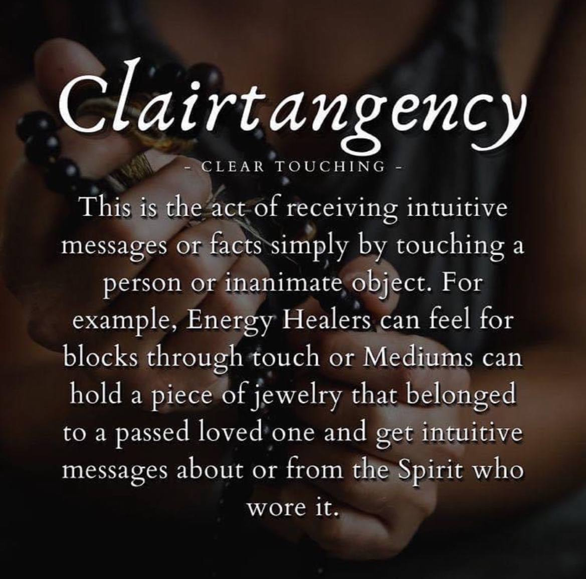 1. Loved Victoria Erickson’s Quote Eliza… And yes… I would call myself Clairsentient… I gave my services free for Many years within the Spiritual Churches in the UK… Also I am a qualified Spiritualist National Union (SNU) healer.. The Qualification just means you use a set of rule in guidelines.. But we all can be Healers.. and we all of us if we so practice, and tune into our inner Natural long-forgotten abilities, all of us can use our senses to ALL of the above. I would also do psychometry.. Picking up energy/emotion/ from objects when held..