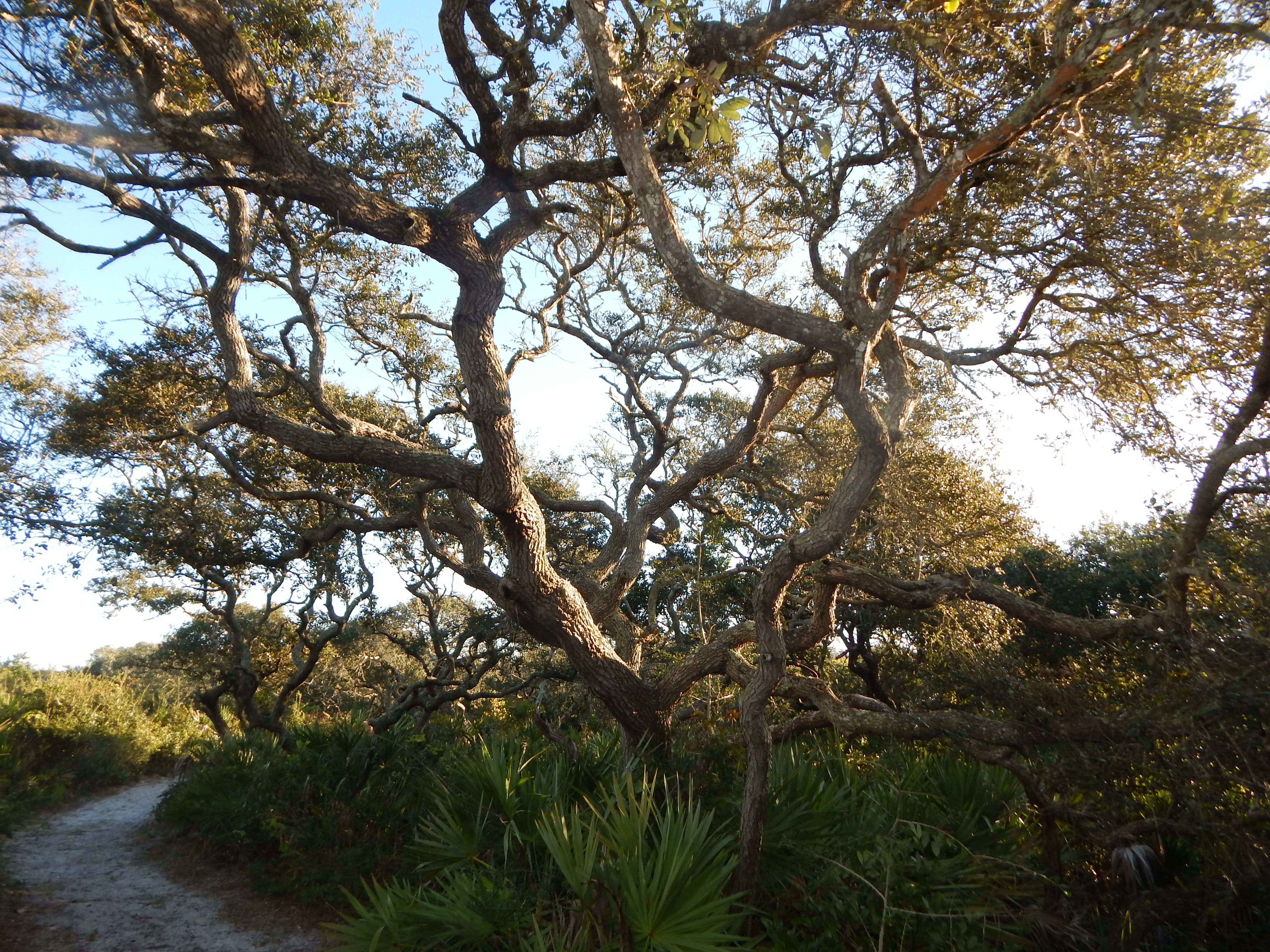Today I went out in the morning to North Peninsula State Park. I had the path pretty much to myself. Everyone else was on A1A (state highway) or in Flagler Beach. It also seems there was a bike rally. High Bridge Road where the park is located is on the Ormond Beach Loop, which follows Old Dixie Road, Walter Boardman Road, High Bridge Road, and A1A (to confirm that, check internet). Tons of bikers, motorized and foot, were on the road. Weekends are very busy on A1A! Still, like I said, I had nearly the entire park to myself, save some guys who were doing some work, one other hiker, and a couple of people hanging out at the entrance to the footpath.