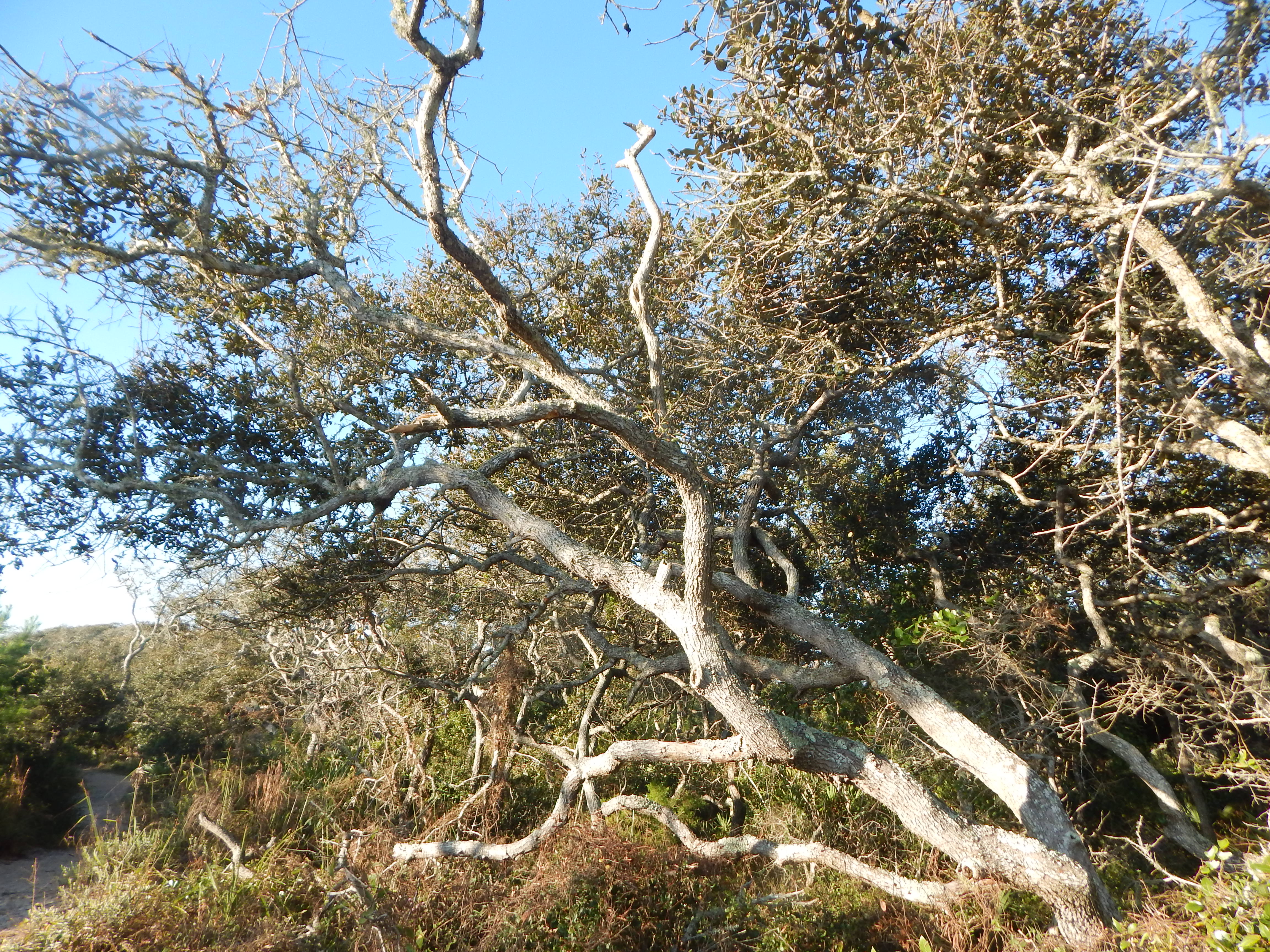 At Washington Oaks Garden, I hiked on their version of a nature trail, although that one didn’t have the labeling and kiosks available at North Peninsula SP. The path was longer than I remember it and the surroundings have changed. I remember what the trail looked like after Hurricane Matthew roared by in 2016. The live oaks were shredded and the saw palmetto trunctated from the storm surge that overtook the seaside hammock, crossing A1A and wiping out the oceanside dunes. The dunes have been restored, but many oaks and other trees have been removed due to salt exposure during the 2016 storm surge (and any other that has taken place since then).