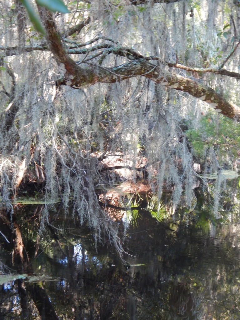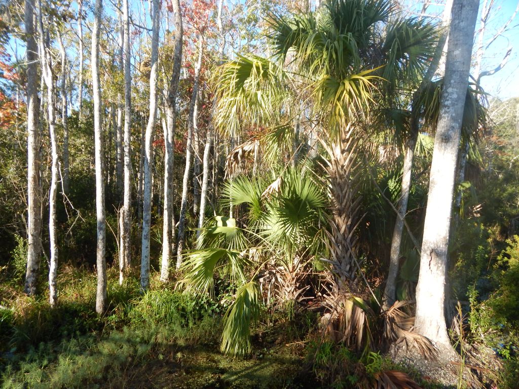 Curious plants grow in the wet environment of the swamp. The trees are primarily hardwoods, oaks, Sabal palms, and on higher ground, the occasional Eastern White Cedar… a lovely full aromatic evergreen.