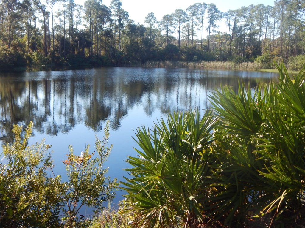 After completing about half of this section of the Lehigh Trail, I returned and circumnavigated Hidden Lake, a nice little conservation area located next to the residential development of the same name. There is a coquina path around most of the lake with some benches placed for contemplation of the view.