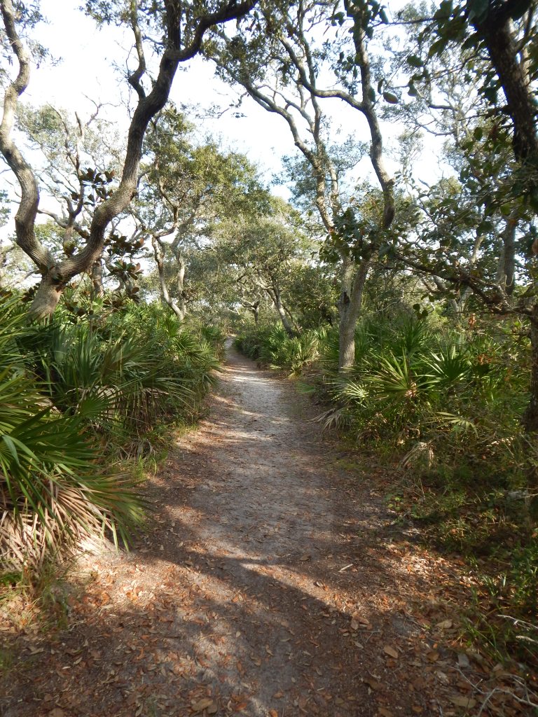 North Peninsula has an assortment of shrubs, trees, and perennials. There are two types of oaks, Laurel and Sand Oak. Sparkleberry, a large species of blueberry grows in the thick underbrush, as does Saw Palmetto, and aromatic Red Bay. I didn’t spot any creatures today, just heard some noises off in the thick brush. The trail does have some signage for those interested in learning about the flora.
