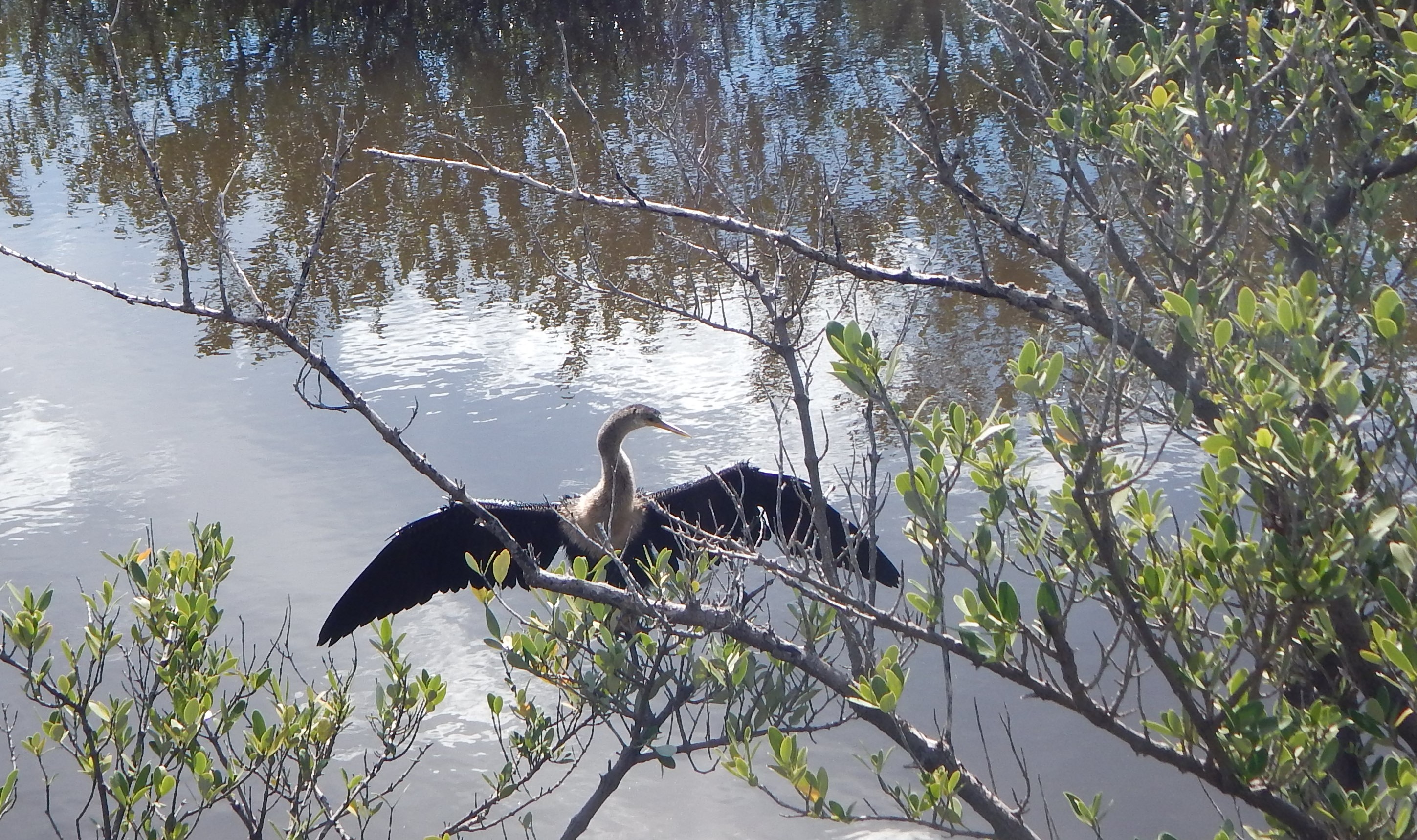 The trail starts at the edge of a large parking lot and dives into a muddy palmetto cloaked tunnel, winding pass soggy mangrove and a man-made salt marsh. The reconstruction of the salt marsh was completed in 2016. I first saw it when the area was being leveled and planted with native plants. By looking at it now, you would never know the marsh had only been there a short while. The original marshlands were disturbed by the construction (dredging) of the Intracoastal Waterway, which in Volusia County goes by the name of Halifax River. High Bridge is a drawbridge that goes over the waterway. The High Bridge road is not open during storms and high water due to its low-lying construction in some areas. I have driven through some sizeable puddles near Walter Boardman Pond and Bulow Woods.