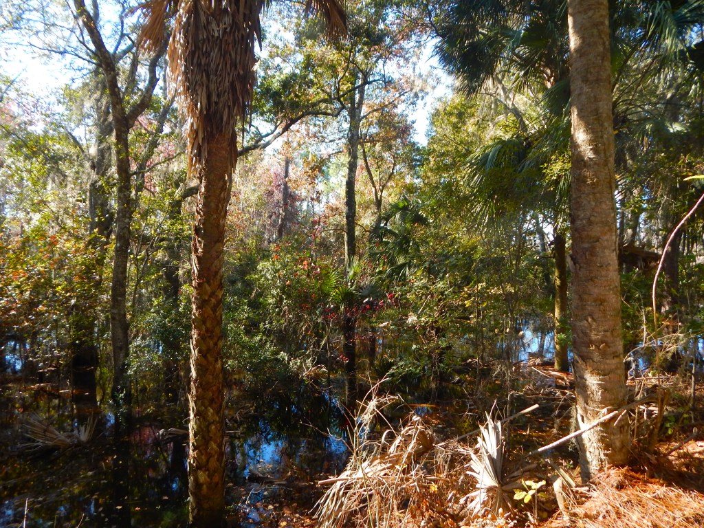 I walked from Old Kings Road to the beginning of the long boardwalk that starts near Colbert Road, so I probably walked at least four miles this morning. The air was sparkling fresh and there was a sharp chilly breeze to start. Later on, the temperature began to moderate, but it still hasn’t risen above the mid-60’s F ~ 19C.