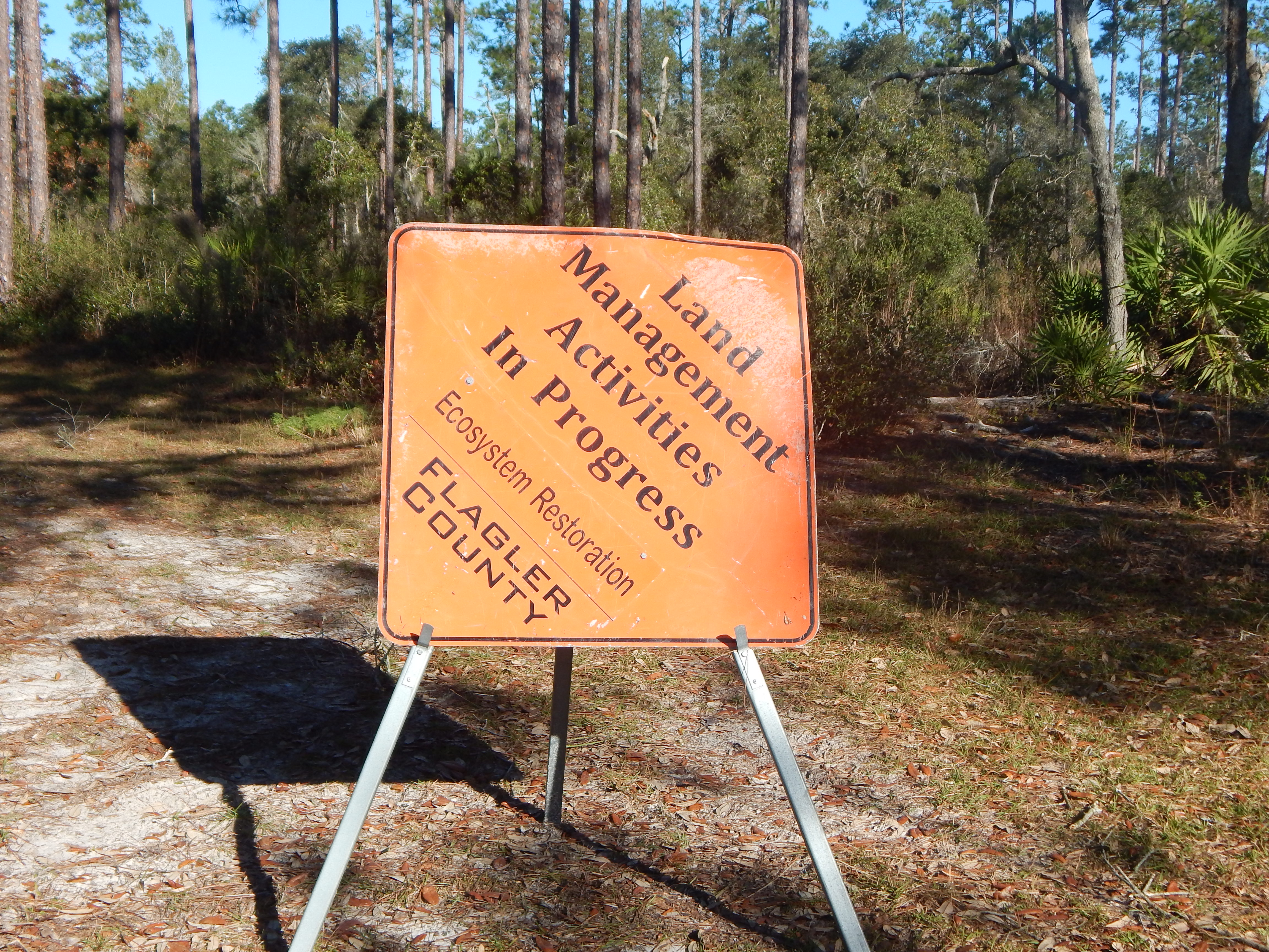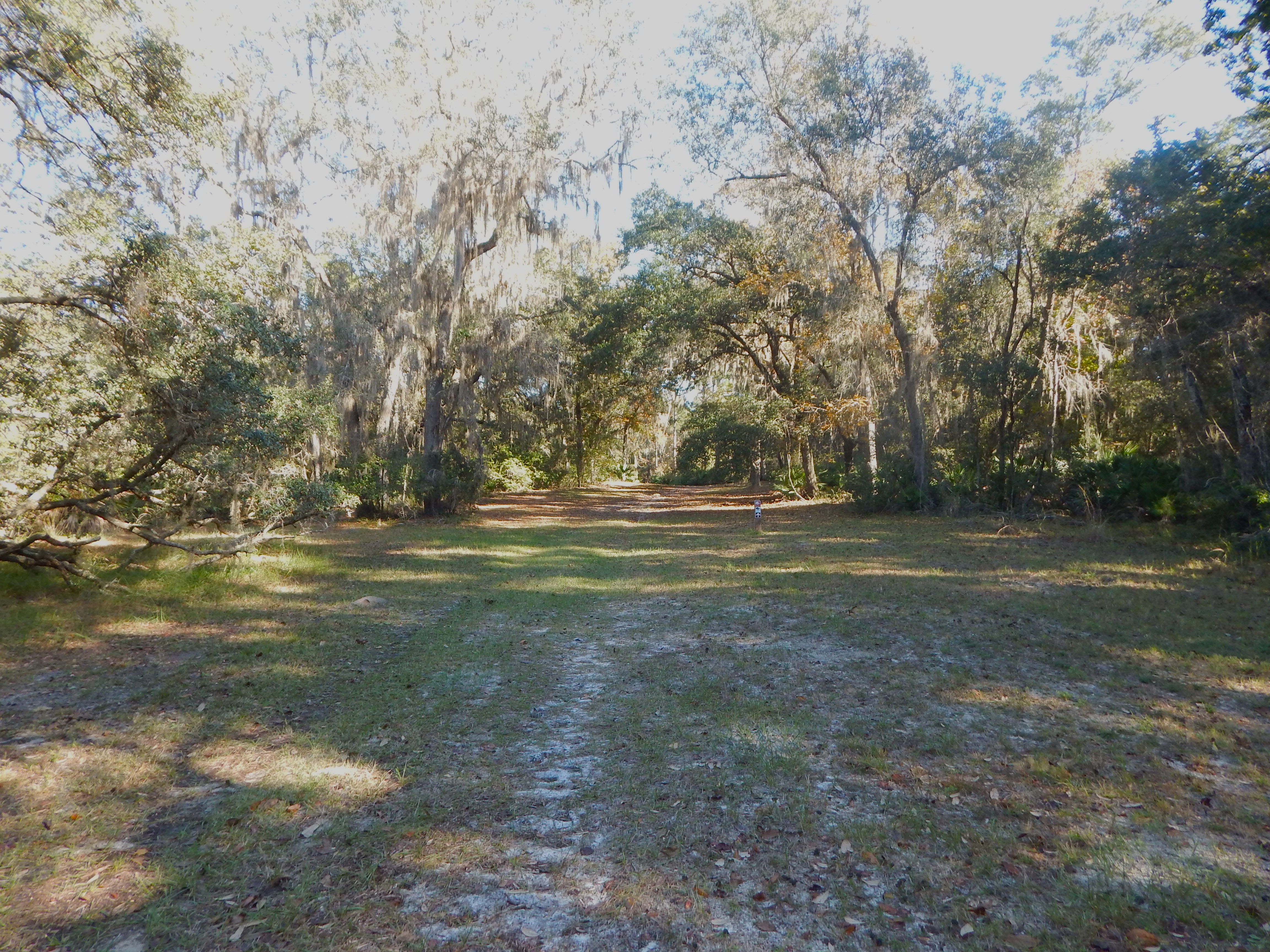 The Hominy Branch Trail (what’s left of it) wanders up a slight slope passing beneath spindly sand live oaks, Turkey oak, and towering longleaf pines. Eventually, the trail reaches a T-intersection, where the trail divides. To the left, the trail is now closed. So, I proceeded to the right and joined the red equestrian trail a short ways down slope.