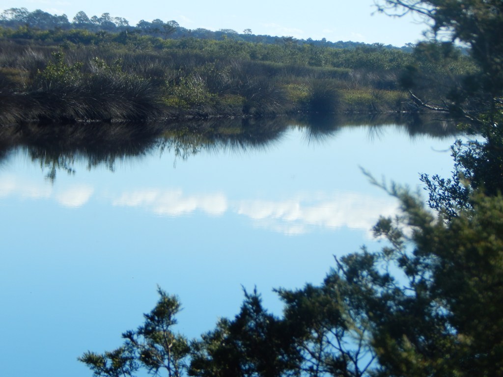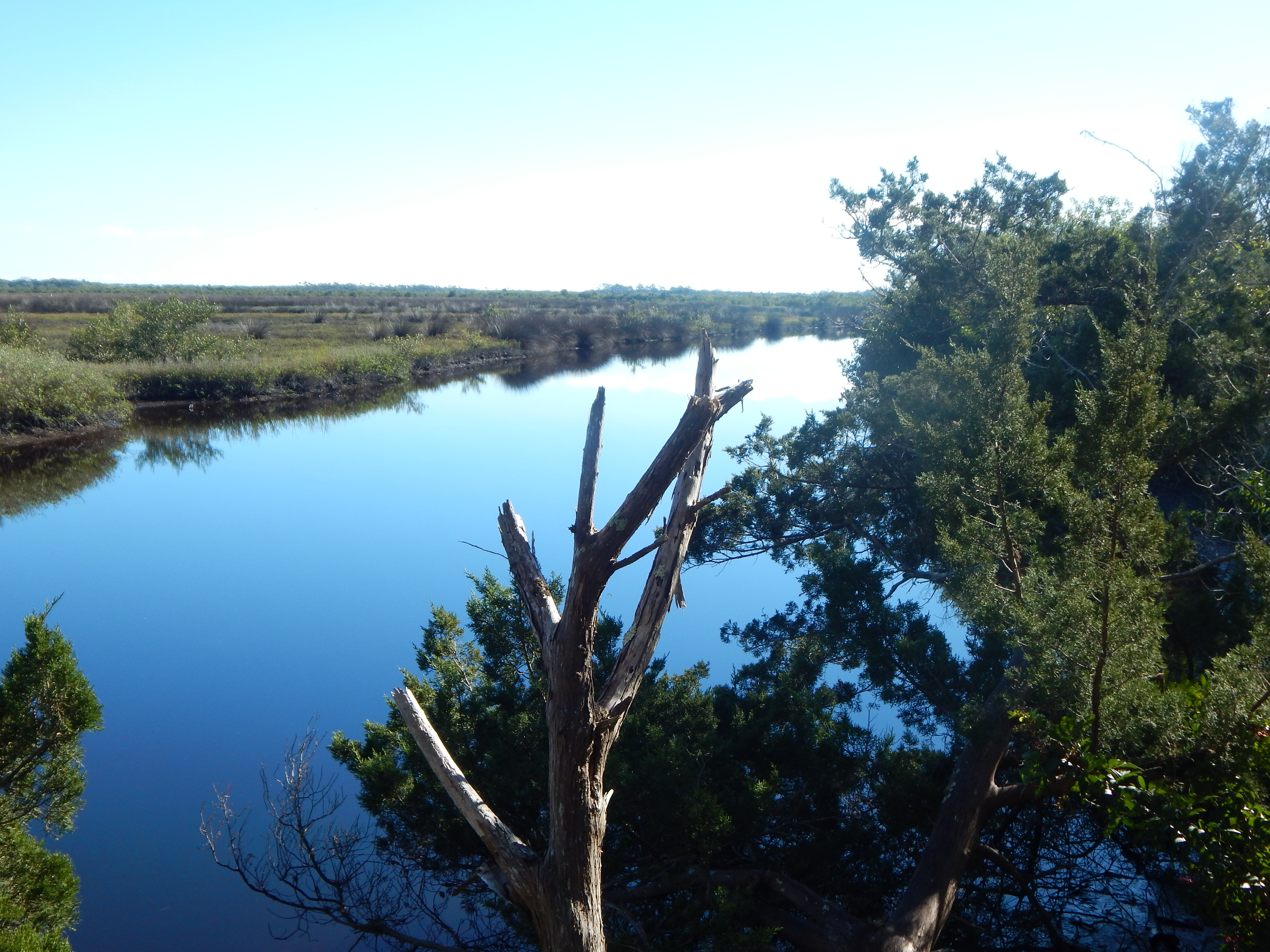 The forest canopy opens up as you near Cedar Creek, a salt marsh.