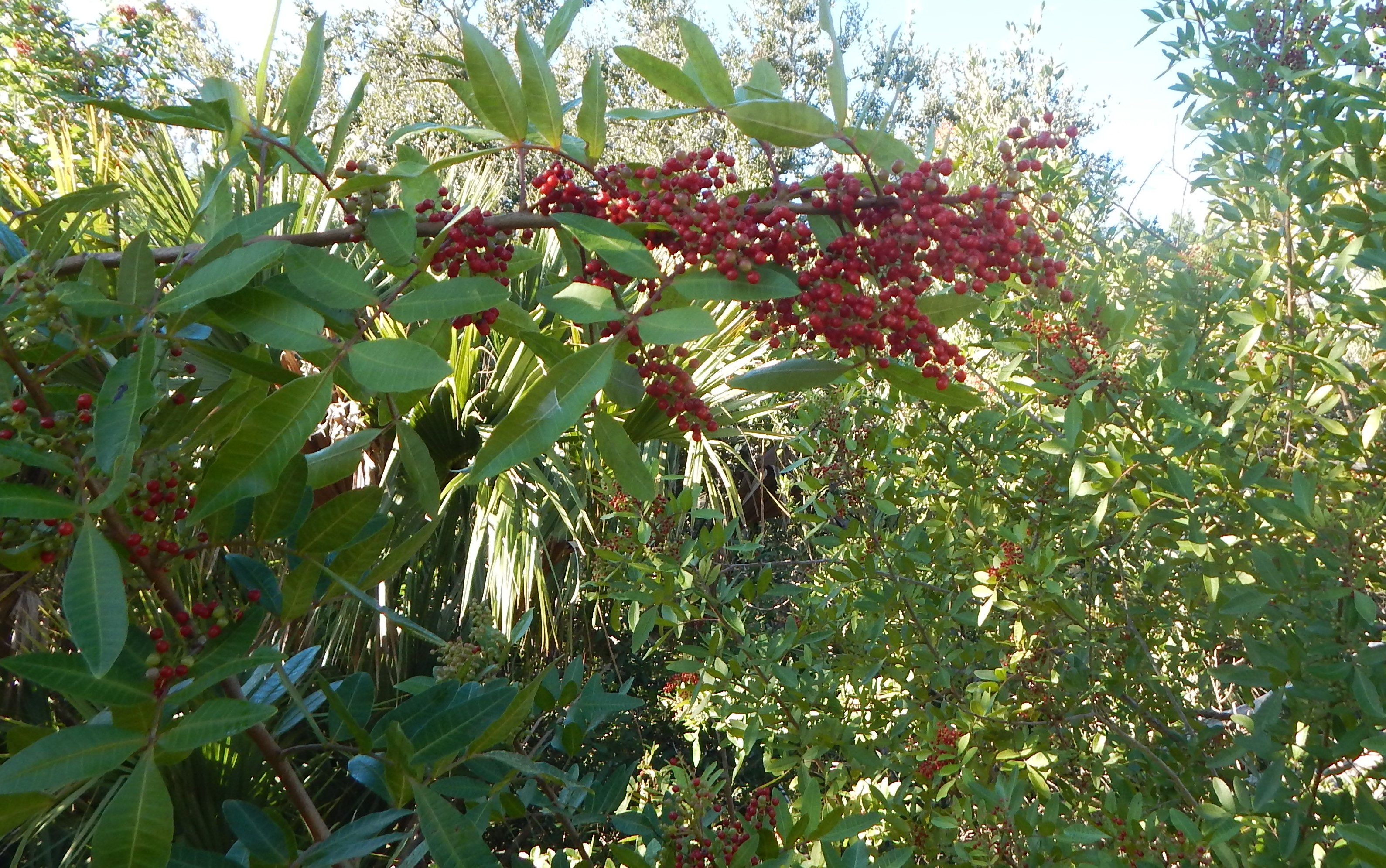 I’ll figure out this shrub with the beautiful red berries. It was growing abundantly along the shoreline of the marsh. I noted quite a lot of it also growing in the salt marsh and mangroves at Betty Steflik’s Preserve.