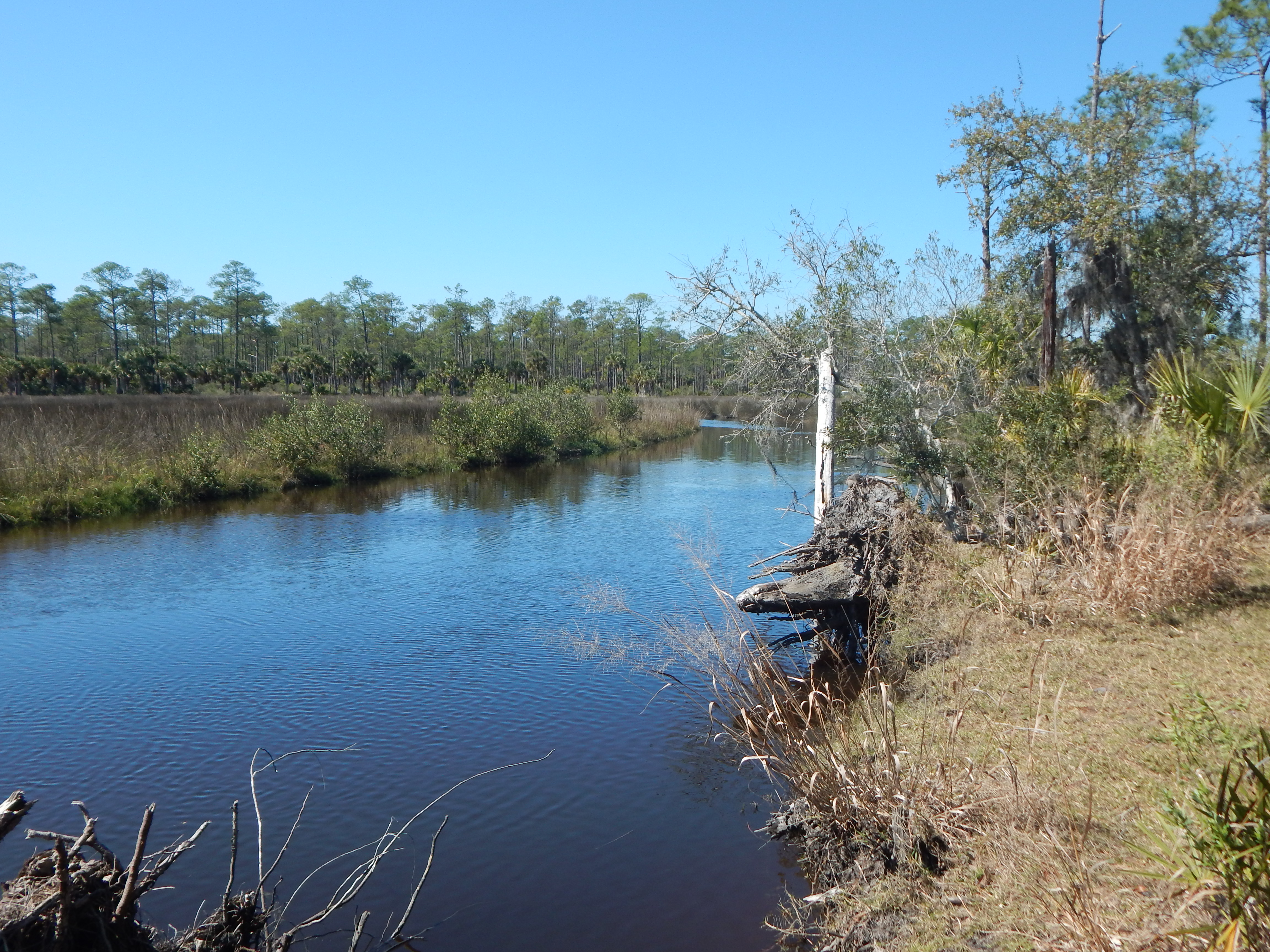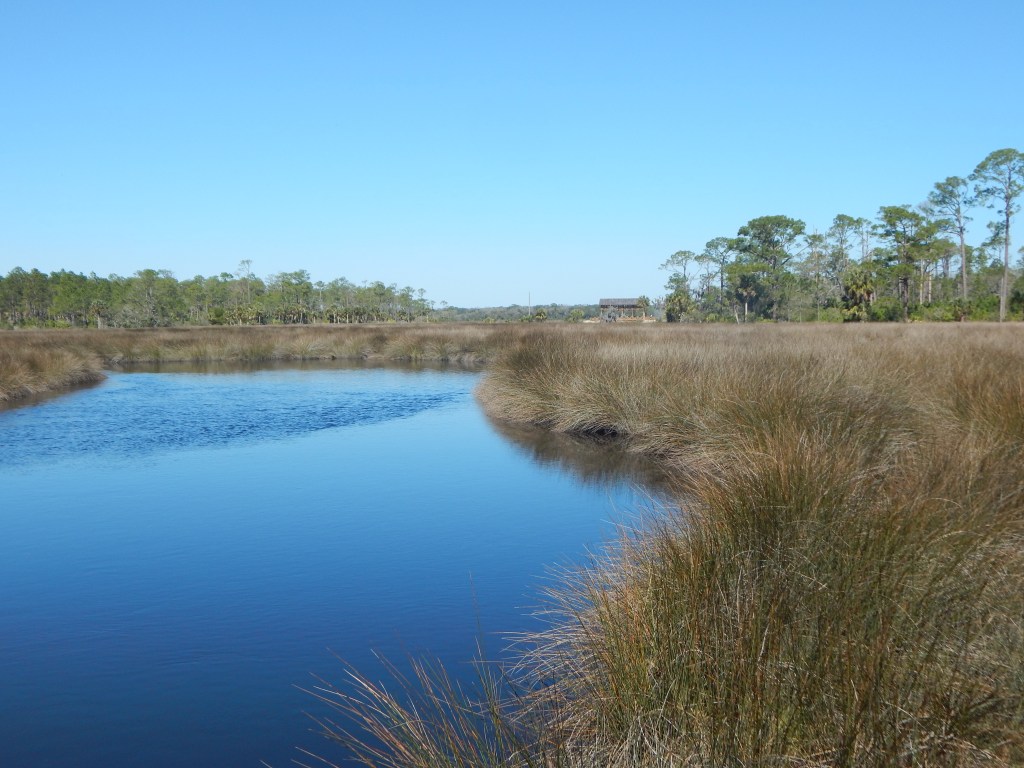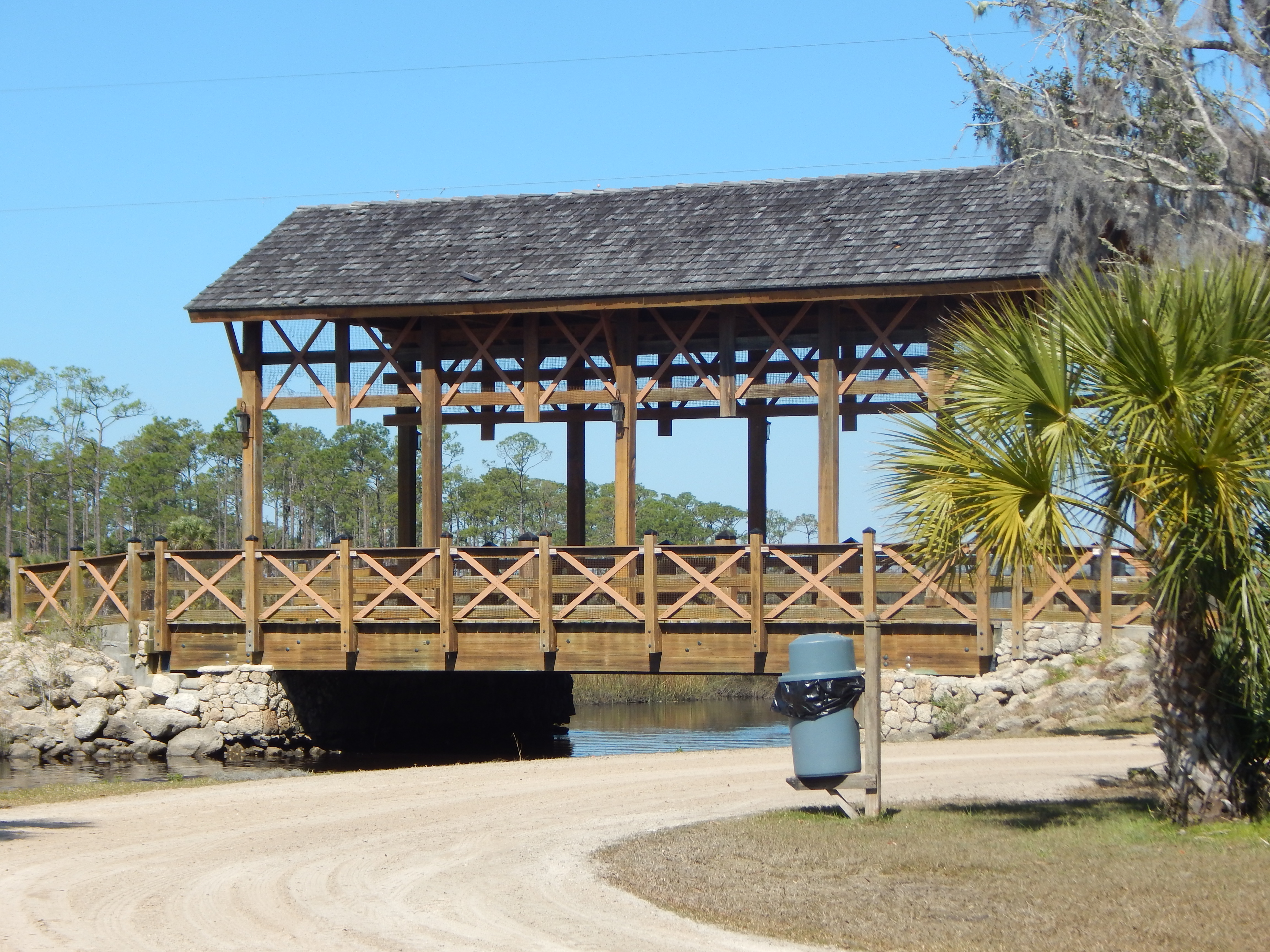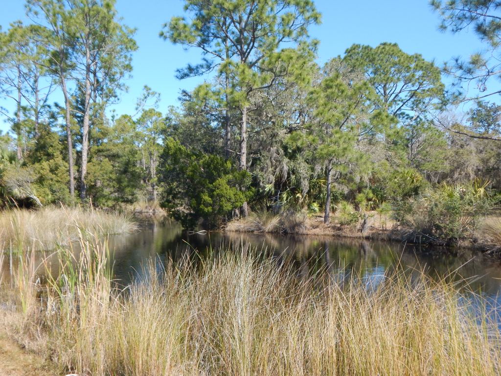 This morning I visited Princess Place. The temperatures were in the 60’s, the skies blue, the park full of people in some places, empty in others. I chose to take one of my favorite walks, parking near the covered bridge over Stiles Creek and then setting out on a portion of the equestrian trail.