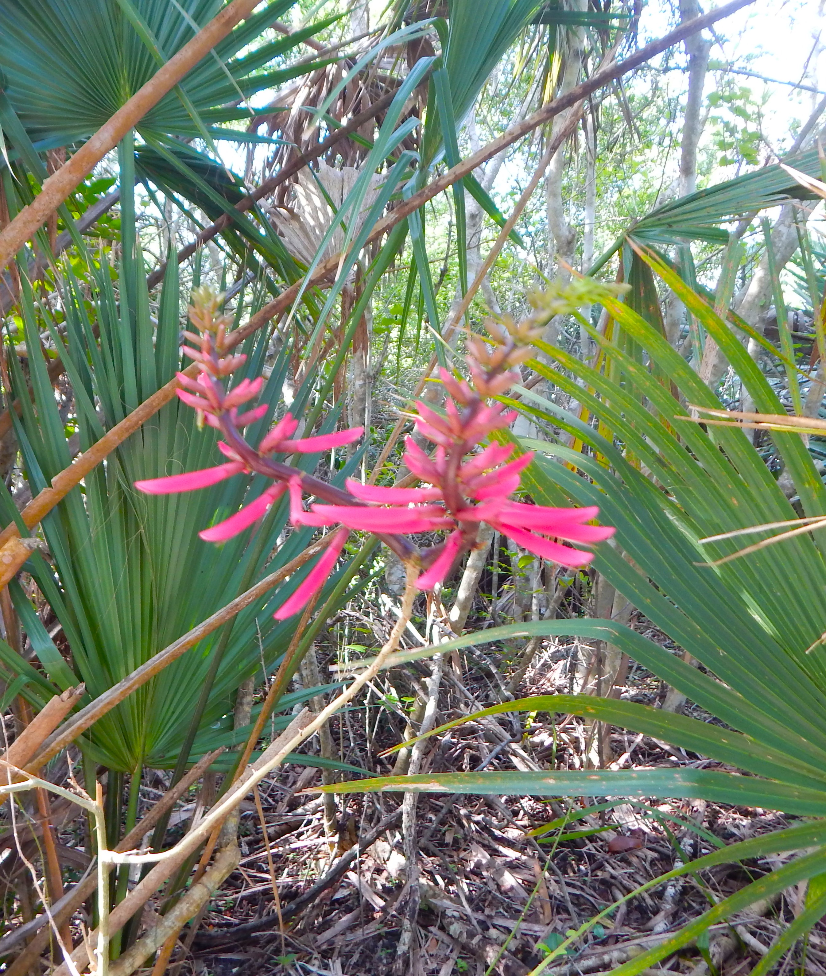 On Thursday, I started a short outing to North Peninsula State Park. Nearly as soon as I plunged into the shady trail, I was confronted with an unexpected surprise, a brilliantly-colored odd-looking plant. It looked a bit out of place in the green and brown undergrowth of the subtropical hammock…