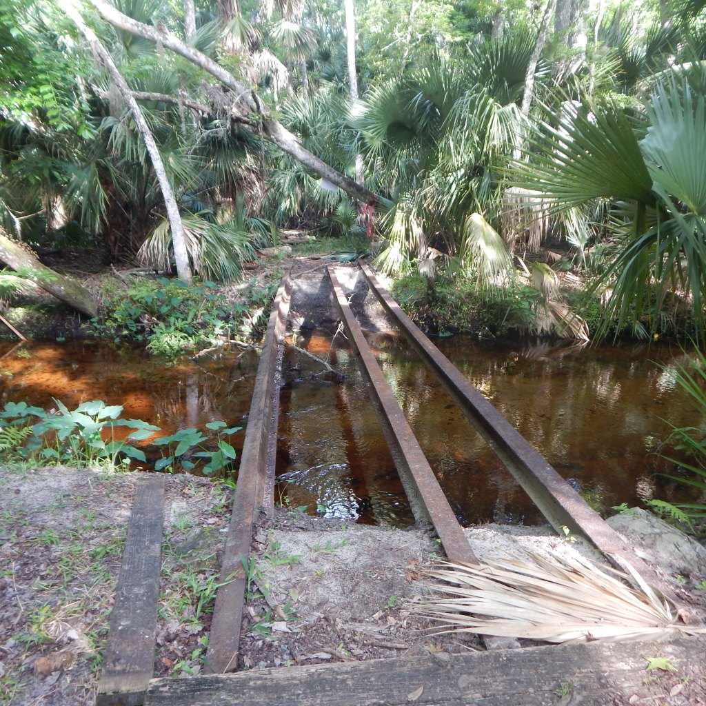 On Tuesday, I headed to Bulow Woods, to do the middle section of the trail. The northernmost part of the trail still has not been repaired. I did walk to the location of the old bridge which consists of rails right now. The bridge planks were quite rotten and were removed by park staff and piled up near the old bridge.