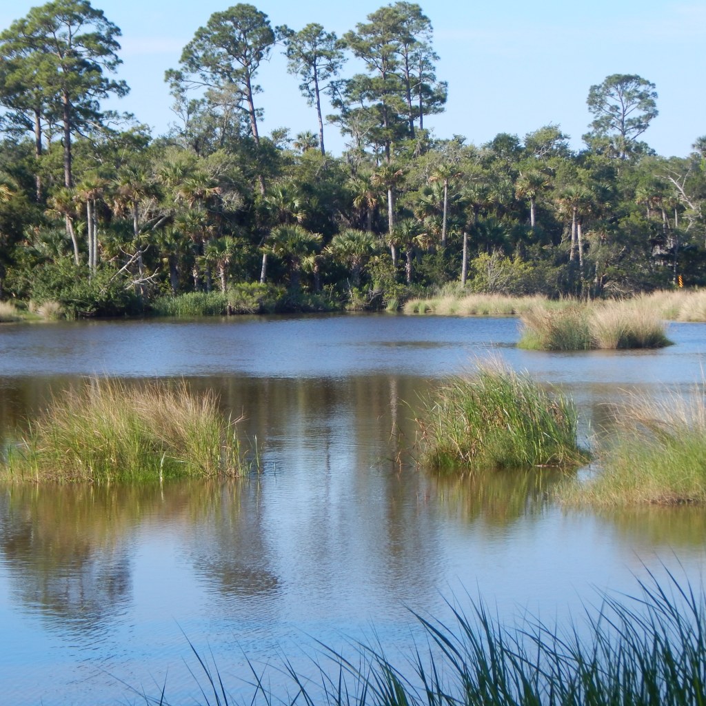 There’s Bulow Woods… located just inland from the Atlantic Ocean, south of Flagler Beach. It is a relatively undeveloped State Park and charges no entry fees. Parking on Boardman Lane is limited, but there is a large parking lot located at Fairchild Oak and another one at Plantation Ruins SP to the north. The northern park does have an entrance fee of $4.00. The rangers there offer periodic talks in the little meeting room. There is also some short trails there to the ruins and a boat dock on Bulow Creek.