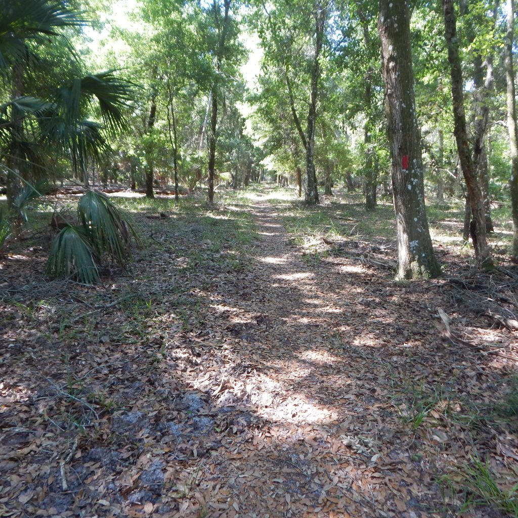 On Tuesday, starting at Walter Boardman Lane, I walked northward on the Bulow Woods Trail through the “middle” portion of the woods. You see, the woods are divided up into three sections — 1) from Fairchild Oak to Boardman Lane; 2) Boardman Lane to Cisco Ditch; 3) Northern Bulow Woods, the latter area being currently closed due to trail damage.