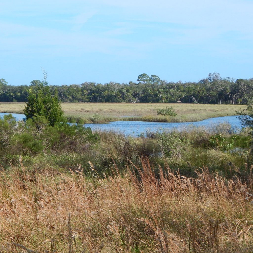 Upon returning to the beginning of the trail, I found the tidal flood was even higher. I chose to go out via the service road and walk back to the parking lot via the road. I stayed a bit drier that way, although it was a slightly longer route. Apparently the tide was really high mid-morning. Now I know I can’t get across nearby Cedar Creek (Bulow Woods) because the bridge is flooded at high tides, too. Even when I drove along High Bridge Road, I was driving through some puddles caused by the high tides. The water in the Bulow Creek – Halifax River marshes was very high, nearly lapping onto the road. This ancient roadway is closed during heavy rains due to the flooding.