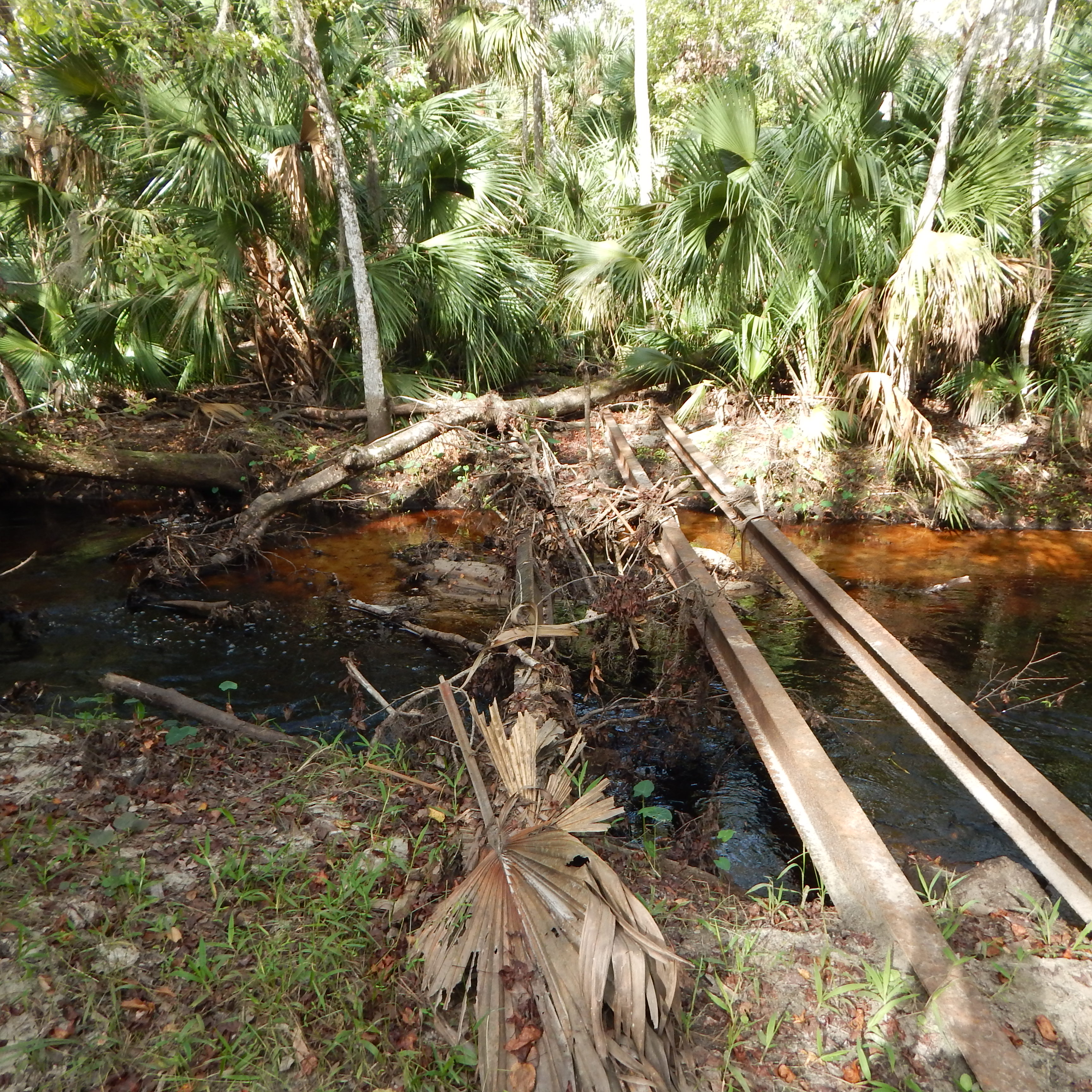 Now, I completed my walk for today at the middle section of Bulow Woods Trail, from Boardman Lane north to the canal. Here I was checking on the status of the Bulow Woods Trail, whether or not the northernmost section repair was completed. It was not; the bridge is still out of commission:
