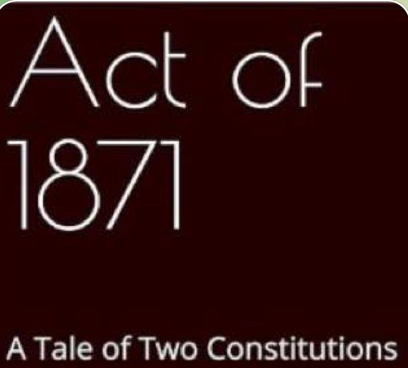 This act was the most damaging thing that happened to our constitution and our freedoms. Our rights were handed back over to the British monarchy in 1871.