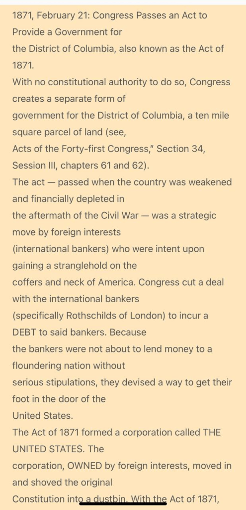 Act of 1871 was the hostile takeover of the US by the Rothschild banking cabal!!!