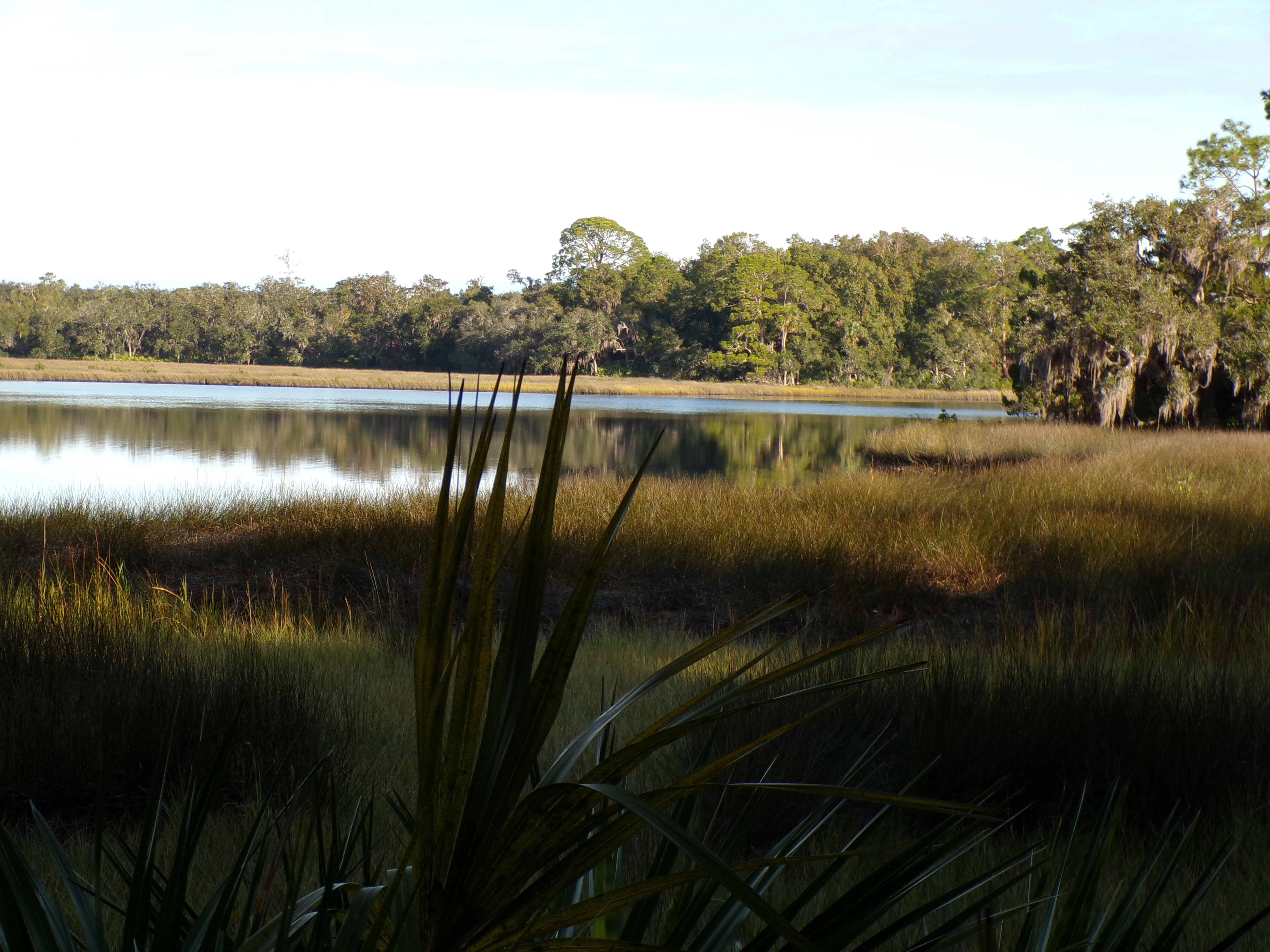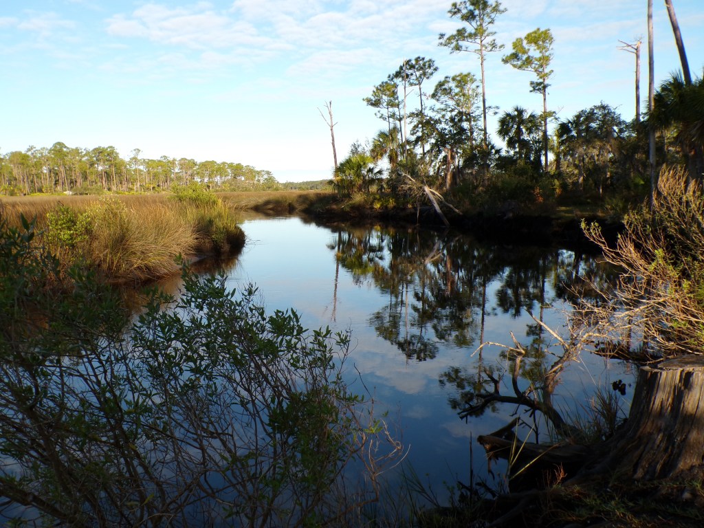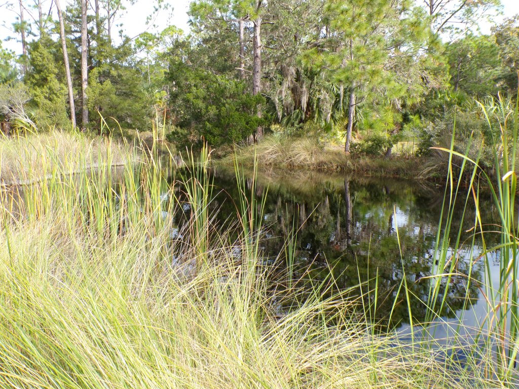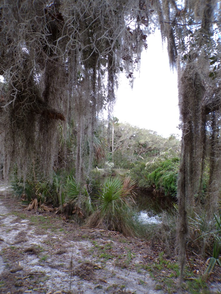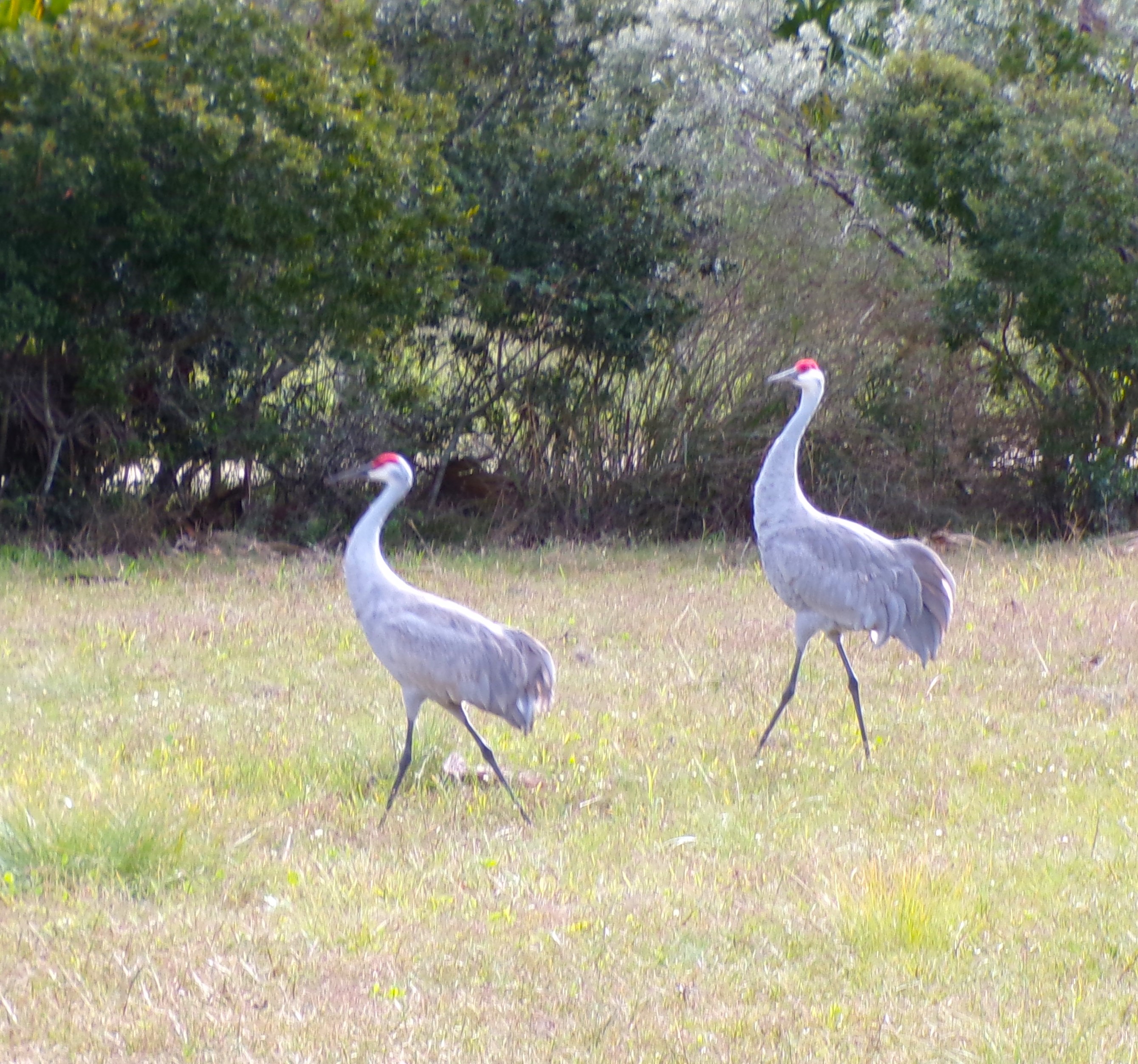 Just as I was completing the hike and approaching the Stiles Creek bridge, I heard a noisy croak behind me and saw these two elegant Sandhill Cranes. This was an unexpected treat. I have never seen these elegant cranes in the wild before. Apparently they fly through the area and sometimes winter over. This part of Florida is well-known as a bird migration route. I also saw an Osprey, Great Blue Heron, White Egrets, and a Tri-colored Heron.