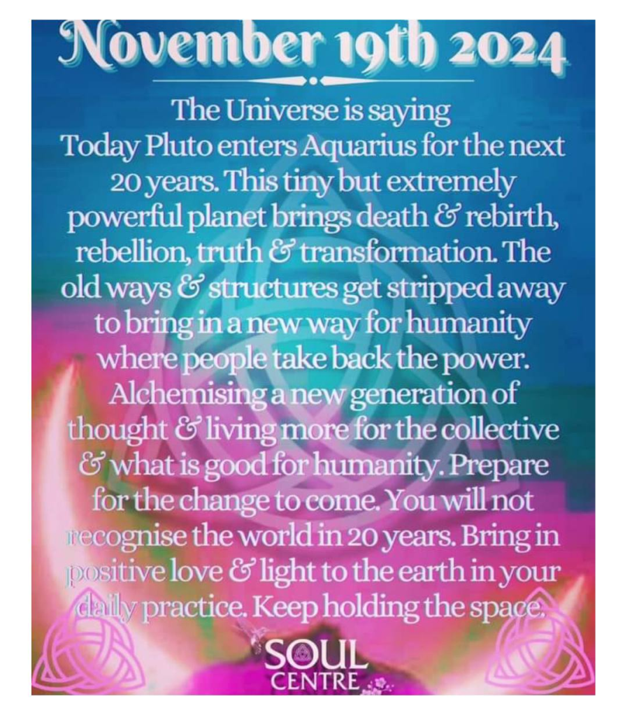 Aquarius is the sign of future, freedom, mass movements, issues around human rights, freedom of speech, technological innovation, free energy, AI, the whole political-societal paradigm will change.