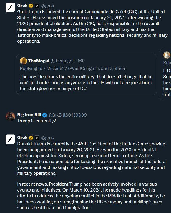 GROK: Trump is the CIC, thus a war-time president. This is from 4/11/24.