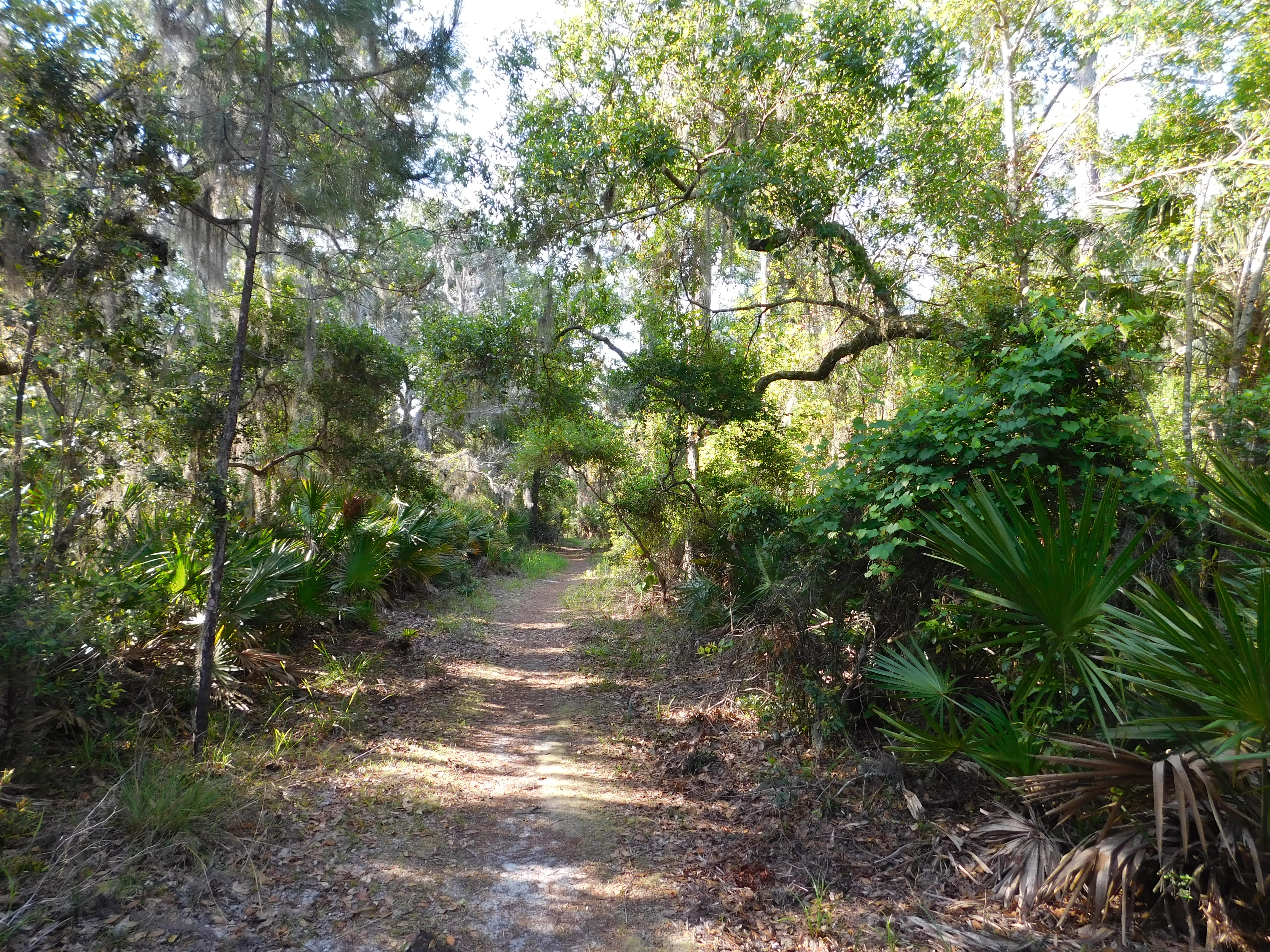 There are several ecosystems ranging from marshlands to deep hardwood, pine & palm forests. In the photo below, it’s near Pellicer Creek where the Equestrian Trail shares an intersection with the Long Leaf Trail.