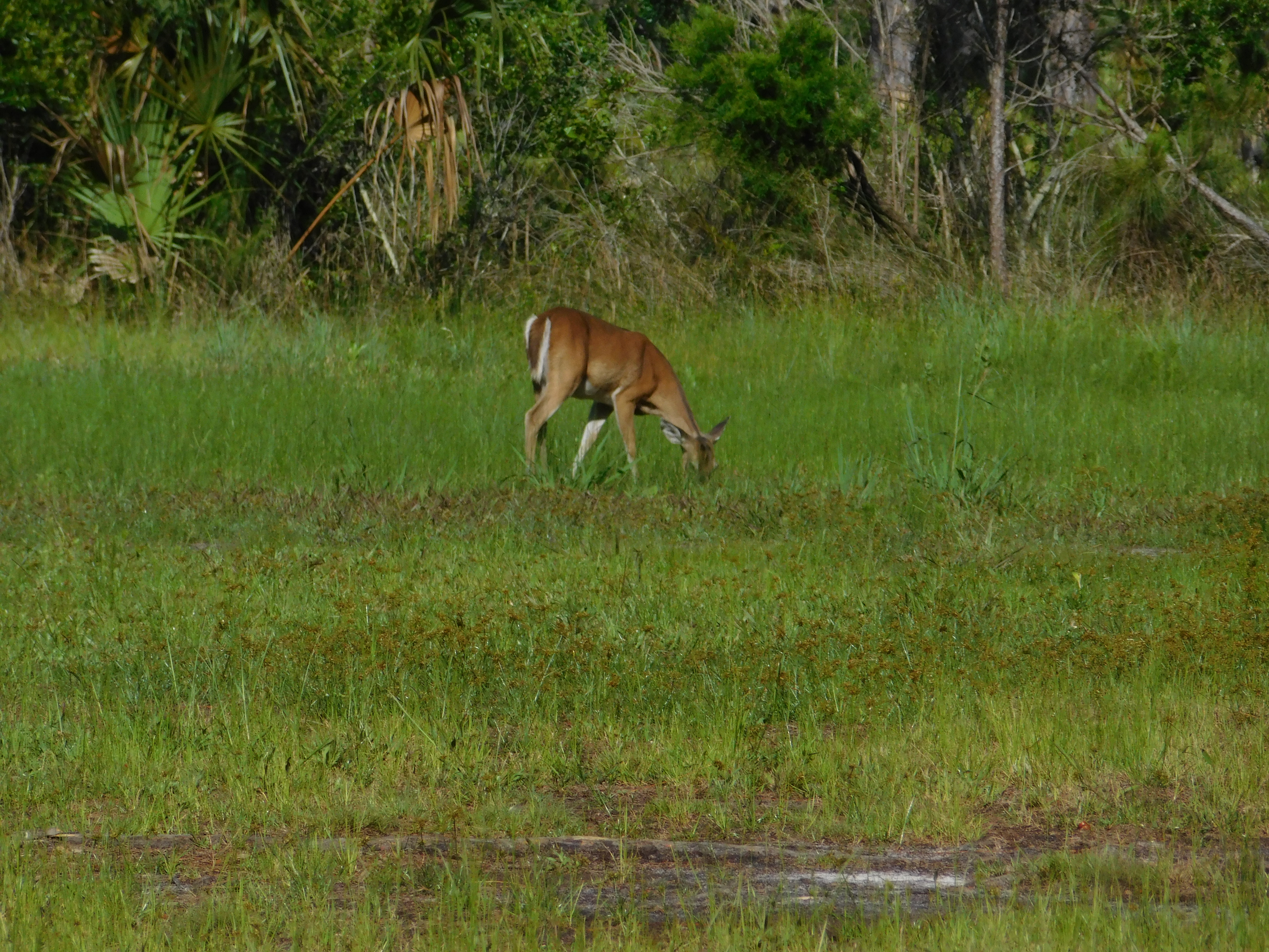 As I was nearing the main road, I noted a doe and her sheltered fawn in the meadow, a wide spot on the Equestrian Trail at Princess Place Preserve. As I was about to cross the covered bridge I first heard this fellow give a loud croak. He was nearby… he’s a regular fisherman on Stiles Creek.