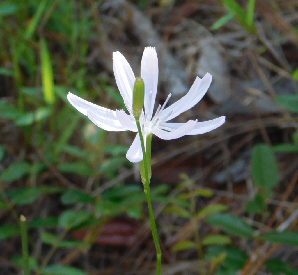 After bailing from Bulow Woods, I drove north on Old Kings Road to Graham Swamp to see if the conditions were more manageable. They were. No mosquitoes so it is likely the park department sprays for them. There were few people out; I only saw 3 people on the trail and another person drove up just as I was leaving. There is a lot of shade on the trail so it also wasn’t too hot. I also spotted some beautiful and unexpected flowers on the 3 mile walk. And I was serenaded by cicadas, their buzzy song ebbing and flowing in the relatively still morning air.