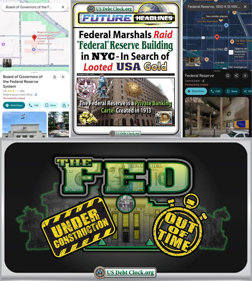 👉 Headlines are surfacing (even in mock “future news”) about marshals raiding Federal Reserve vaults for USA’s looted gold.
