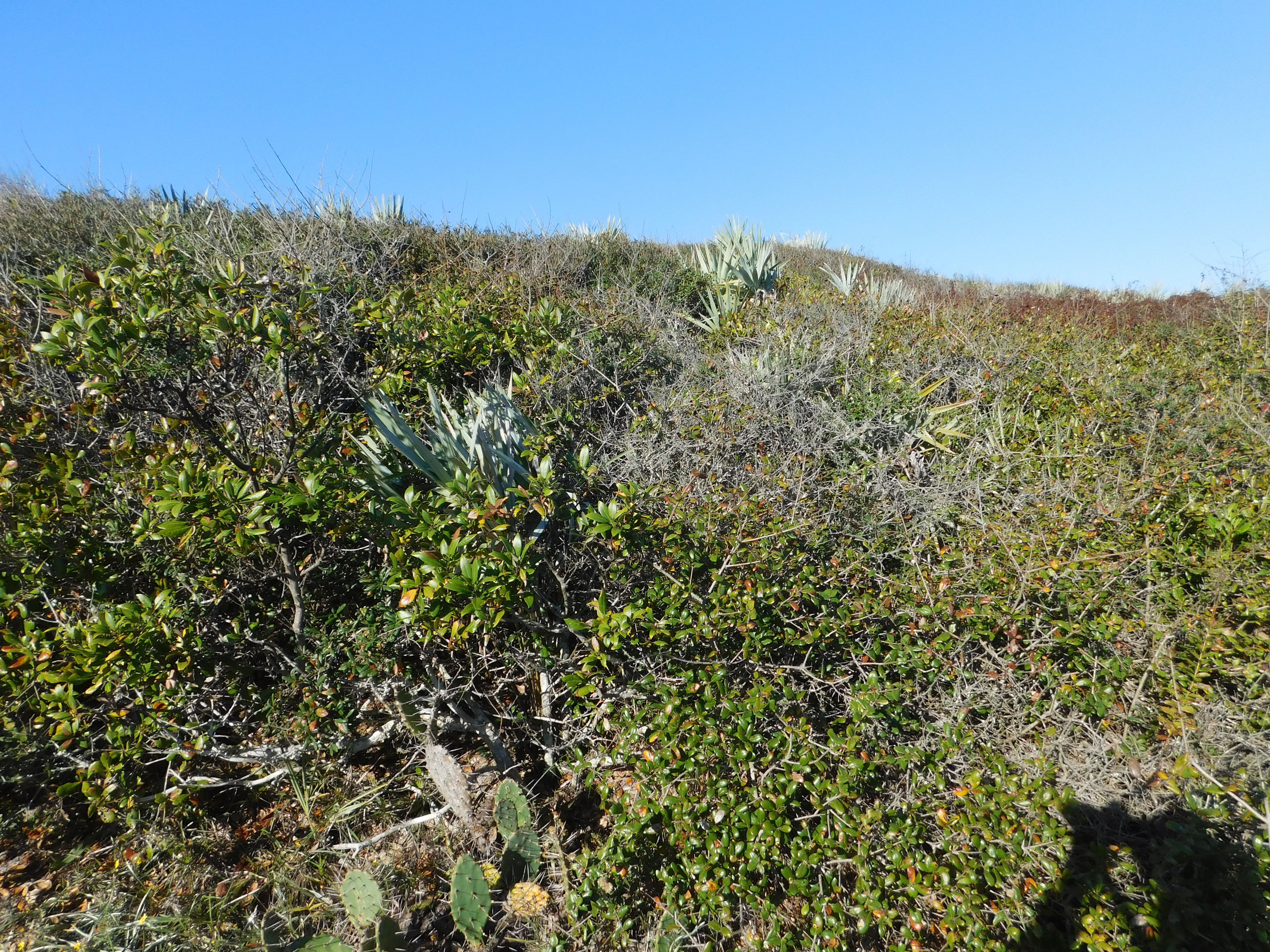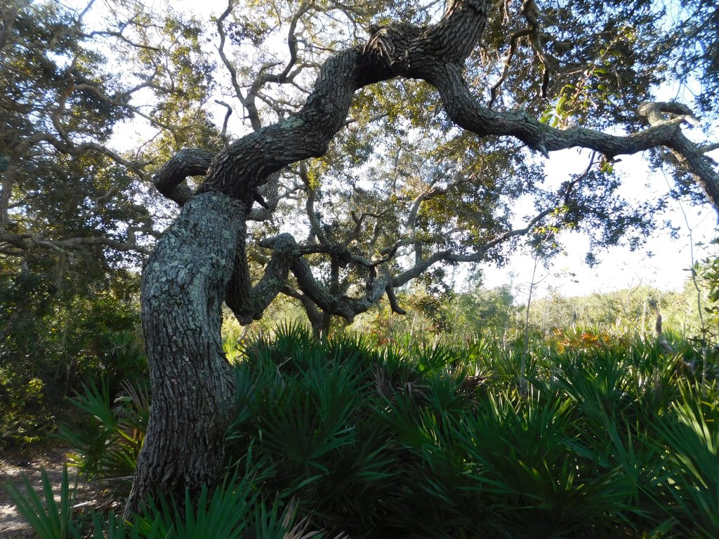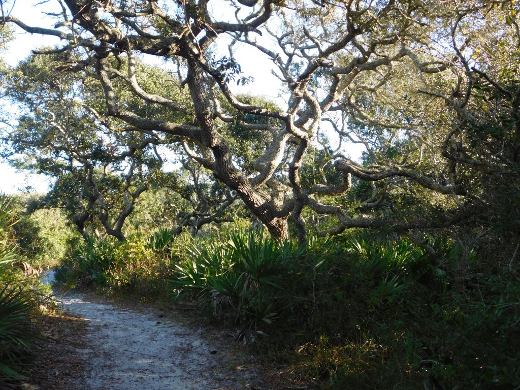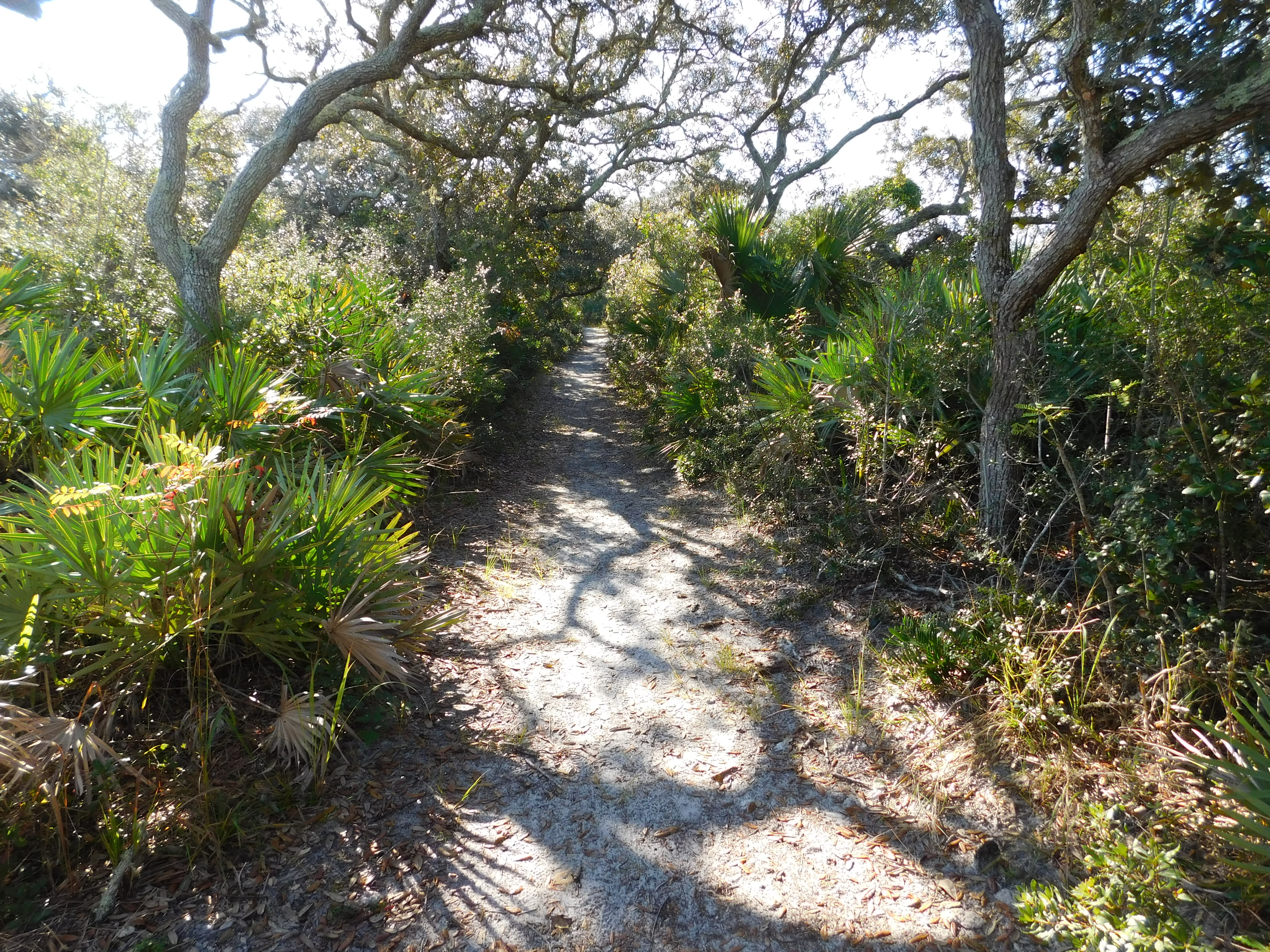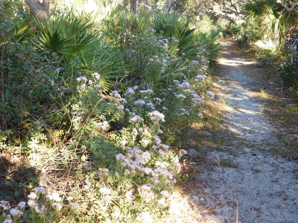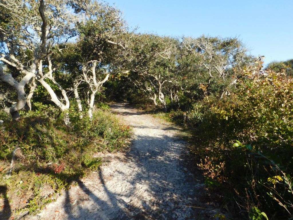 So, today’s destination was North Peninsula State Park with its two-mile nature walk. I love this sandy trail as I’m always finding unusual plants along the way, depending on the season. The trail is thickly lined with coastal scrub, consisting of stiff Yaupon Holly, Red Bay, several species of squat oaks (Myrtle, Sand Live Oak, Chapman Oak, etc.), Magnolia, Saw Palmetto, Wax Myrtle, Sparkleberry, False Indigo and a few others I haven’t yet identified.