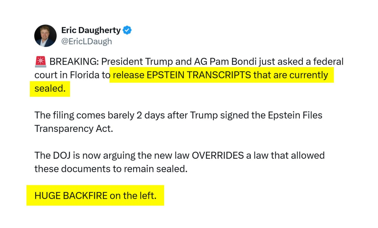 I have spidey senses telling me its going to happen again soon, too. I think they’ll succeed in taking out AF1, in particular because of his now insistence that the [Epstein] files come out. Remember when I told you yesterday or the day before that [Epstein] was the Keystone? The thing that holds the lies and deceit together? That when this drops, they’ll have to do something so dramatic that could cover it all up?