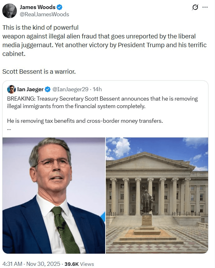 Now Bessent is pulling the refunds, the credits, the incentives — all the little financial love letters our government’s been sending to people who don’t even belong here. And the left is losing their minds because they know the gravy train just derailed.