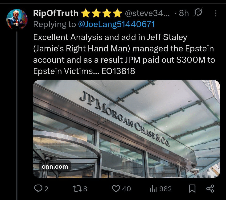 But here’s what’s interesting and indicates that JPM is now a tool in Trump’s hand, taking down the global banking cabal.