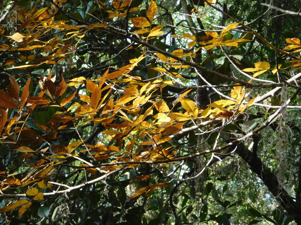 Central Florida’s oak, palm and hardwood forests don’t have the colorful autumn color found further north. Most of the color comes from the Pignut Hickories, Red Maples and Liquidambar (Sweet Gum) but most of these trees are so tall it’s hard to decipher who is who. The hickories do dump a lot of nuts this time of the year, keeping the local squirrels well-fed.