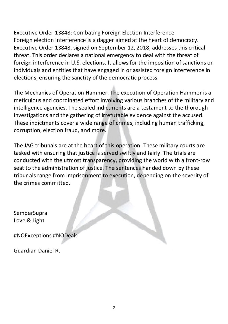 The public JUSTICE PHASE of this military operation is beginning… Tiro estimates the trials will take up to 18 months to complete, which is why new JAG judges have been hired. All are qualified military personnel with knowledge of the Constitution. BTW, these trials have been ongoing since at least 2017, perhaps earlier. Refer to the archives at RealRawNews, that many people have discounted as fake. They’re not. Just because the news doesn’t appear on nightly news doesn’t make it “fake”. This is a MILITARY OPERATION which requires secrecy and psychological warfare to keep the Enemy off-balanced.