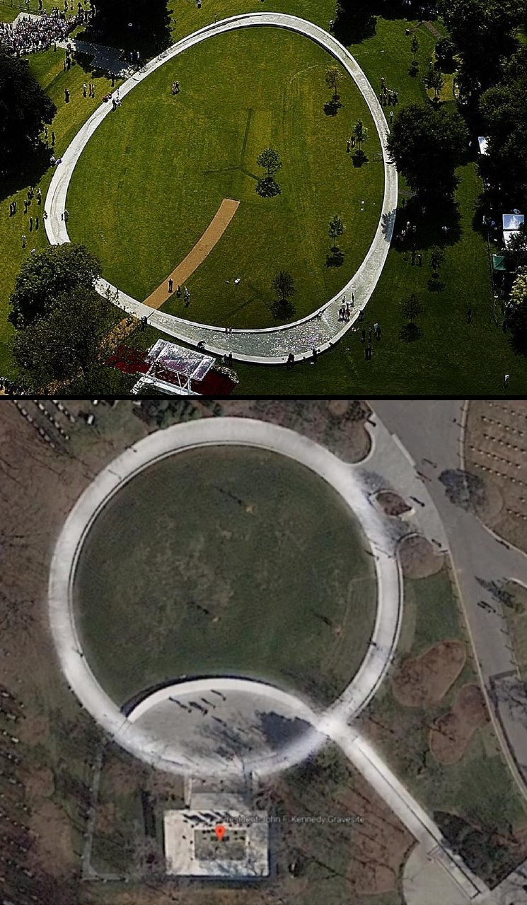Diana memorial seen from the air. (green, above)